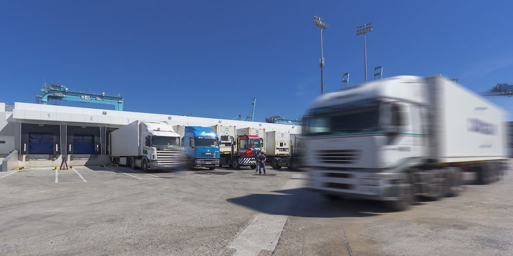 La zona de estacionamiento de vehículos pesados del puesto de control fronterizo previa a la inspección del puerto de Algeciras dispone de un sistema de control de acceso para permitir el paso únicamente a los vehículos autorizados.