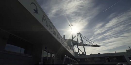 La zona de estacionamiento de vehículos pesados del puesto de control fronterizo previa a la inspección del puerto de Algeciras dispone de un sistema de control de acceso para permitir el paso únicamente a los vehículos autorizados.