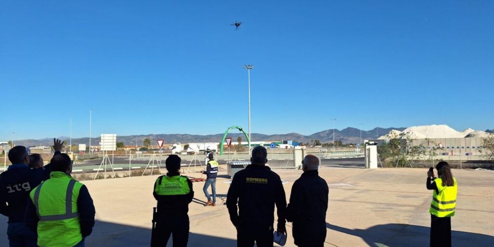 Estos ensayos se han realizado en la dársena sur junto a los accesos a la zona portuaria con drones que han volado a una altura máxima de cuarenta metros metros.