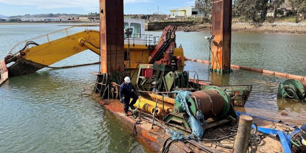 La embarcación 'Fénix Vigo', será la encargada del grueso de estos trabajos, toda vez que la draga se encuentra parcialmente hundida por la proa.