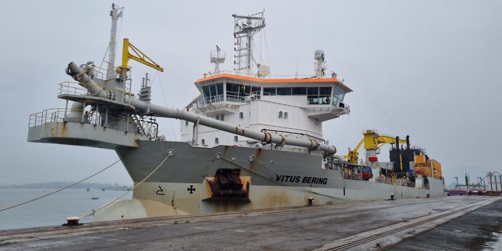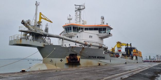 La encargada de realizar esta operación, que tendrá una duración prevista de una semana y contempla la retirada de, aproximadamente, 72.000 m3 de arenas esla draga de succión 'Vitus Bering', draga de tipo 'hopper dredger' construida en el año 2012 que se sirve de una tolva para recoger y almacenar material del fondo del mar.