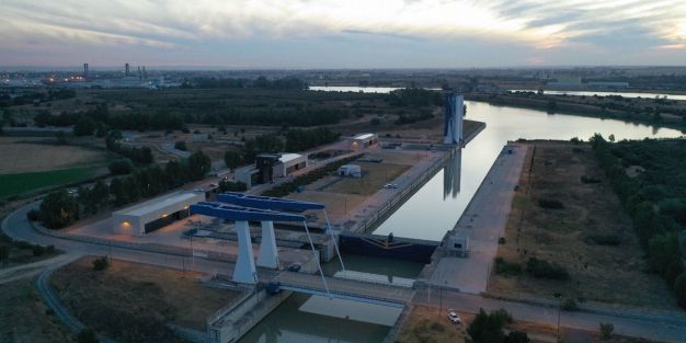 La Autoridad Portuaria de Sevilla sigue adelante con los trabajos para la sustitución de las rótulas de uno de los puentes móviles de la esclusa.