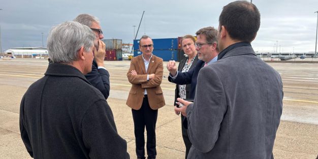 El alcalde de Lérida, Fèlix Larrosa, ha visitado el puerto tarraconense hace unos días junto a representantes de Cimalsa para conocer los principales proyectos estratégicos que la Autoridad Portuaria está impulsando, especialmente en materia de intermodalidad ferroportuaria. También se ha constatado la importancia del desarrollo de la terminal ferroviaria de mercancías del futuro polígono de Torreblanca-Quatre Pilans, tanto para la economía leridana como para la mejora de la cadena logística del puerto de Tarragona.