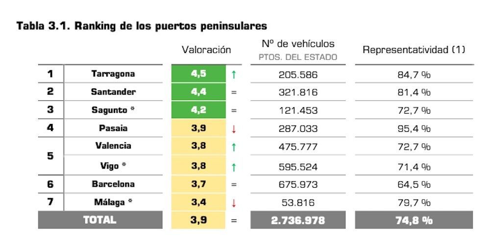 Con más detalle, la asociación empresarial de fabricantes de automóviles sitúa al puerto de Tarragona como primero en su escalafón de valoración con una puntuación de 4,5 sobre un máximo de cinco.