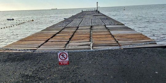 Por su parte, el muelle de la playa de La Alemana ha perdido elementos de soporte fundamentales para su estabilidad llegando a romperse varios tirantes de acero colocados en intervenciones anteriores.