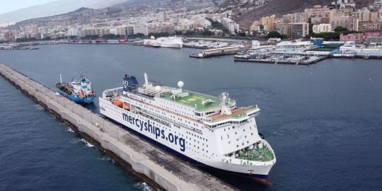 El puerto de Santa Cruz de Tenerife recibe hasta primeros de agosto la escala del 'Global Mercy', el buque hospital civil más grande del mundo propiedad de la ONG Mercy Ships.