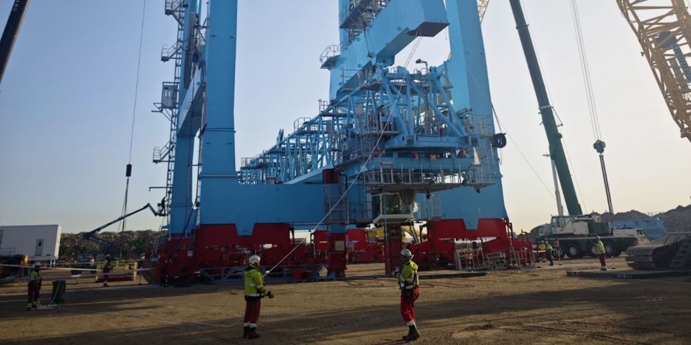 Una vez depositadas en el muelle, tras su viaje desde el puerto irlandés de Fenit, los equipos han sido montados bajo la gestión de Mammoet, y con la supervisión de los equipos de ingeniería de Liebherr, antes de su traslado a su ubicación definitiva en los muelles de la rada.