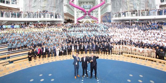 Más de 1.600 trabajadores y miembros de la tripulación se han reunido para celebrar este momento, junto al presidente y consejero delegado de Royal Caribbean Group, Jason Liberty, el presidente y consejero delegado de Royal Caribbean International, Michael Bayley, y el director general de Chantiers de l’Atlantique, Laurent Castaing.