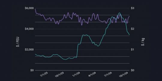 Así pues, el último análisis de Freightos estima que las tarifas en los servicios desde China a la costa oeste de los Estados Unidos han disminuido un 5% la última semana, mientras que los que llegan a la fachada este del país se han incrementado en un 13%.