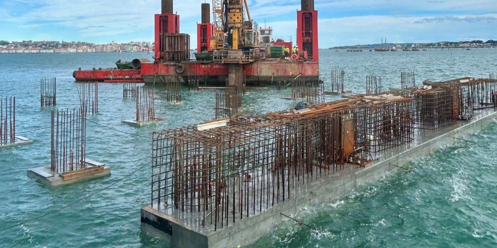 Esta semana se ha completado la ejecución de los pilotes y de la primera fase de la viga que sustentará la rampa del tacón de Raos 9 del puerto de Santander y que forma parte del hormigonado de la segunda fase del tablero.