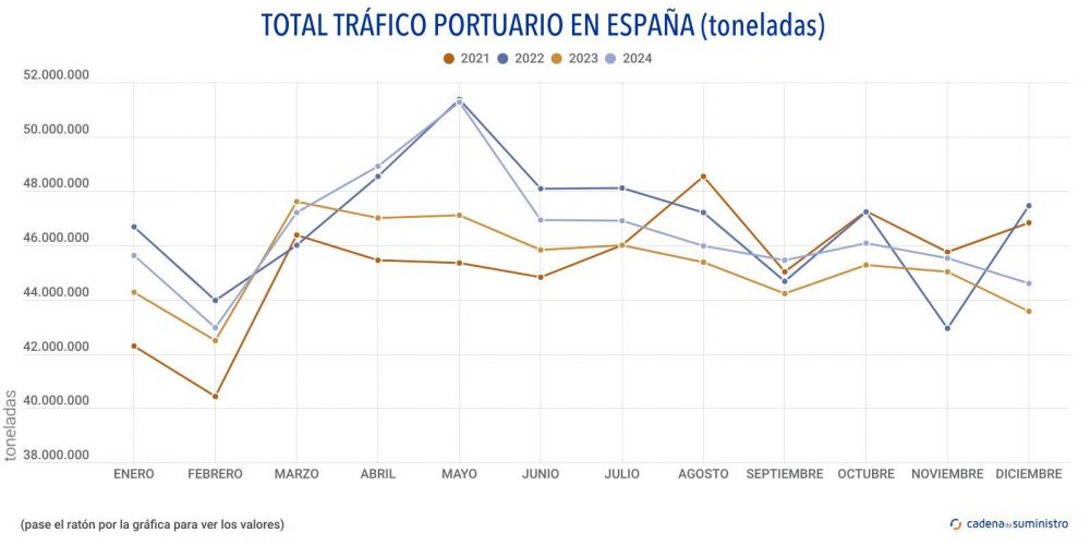 El tráfico acumulado en todo el ejercicio 2024 también presenta un incremento anual de un 2,7% para un volumen total en el período de 557.784.253 toneladas.