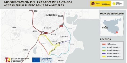 Este corte se mantendrá previsiblemente hasta mediados de diciembre, pero desde el Ministerio confirman que ya se han habilitado los itinerarios alternativos, que están debidamente señalizados, a través del propio núcleo urbano de Algeciras.