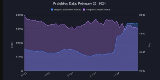 Todo ello pese a que se mantiene la inestabilidad en el mar Rojo y las navieras mantienen los desvíos de tráficos hacia el cabo de Buena Esperanza.
